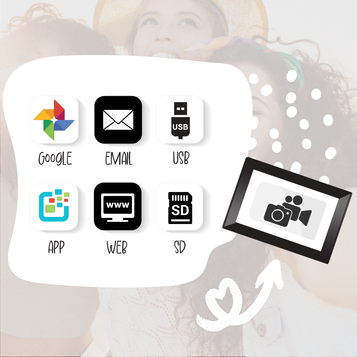 Photospring frame with wifi symbol on top