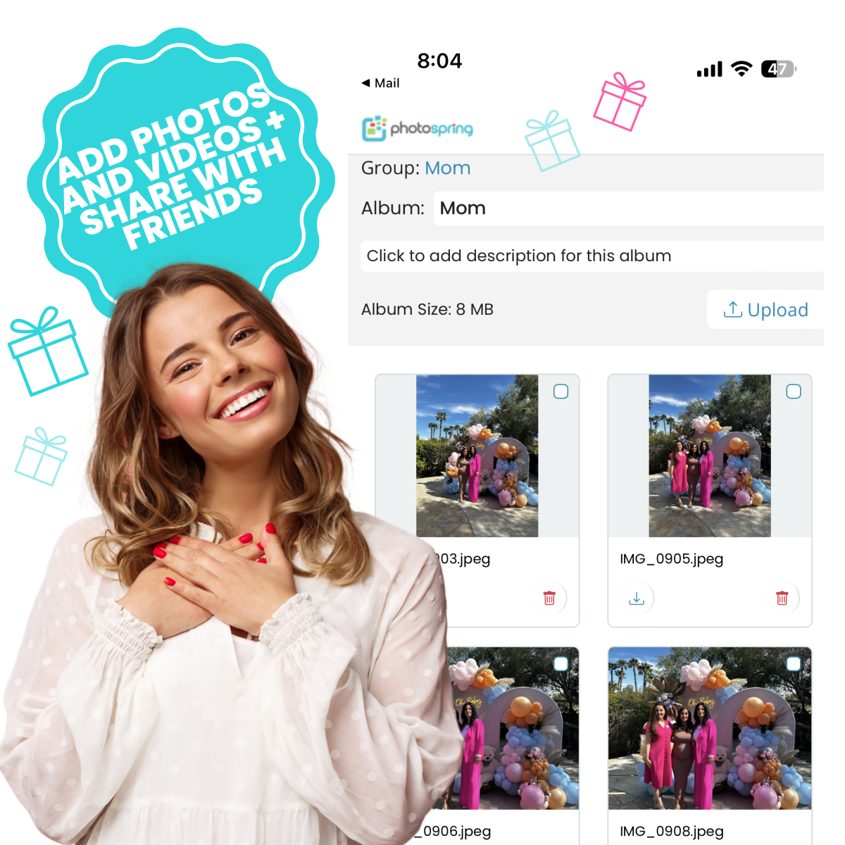 Add albums to your gift frame. You can also invite friends and family to share photos to the frame in advance!