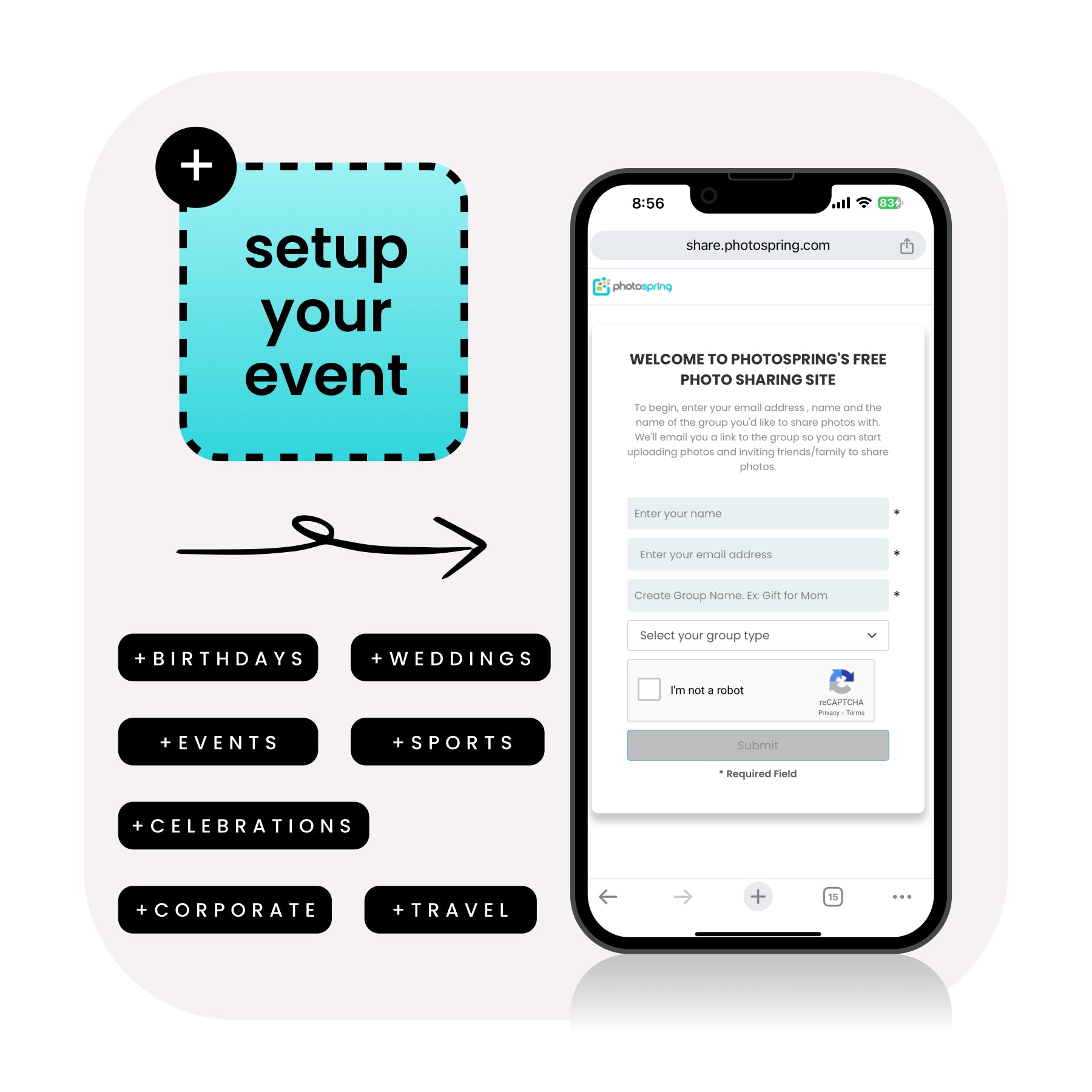 Hosting an event? Setup a FREE digital photo gallery with PhotoSpring's new photo sharing service. Now your guests can share their experience directly to your event gallery. No Apps or guest sign-up required. Simply create your QR code and share with guests at your event.